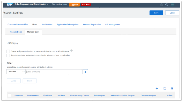 You can also add users within your admin account. The need for adding users in account is when different users are having a different function in your procurement activity. For example, tender admin is responsible to handle all tender submissions and enquiries while Purchase Order admin only handles purchase order invoice related process in Ariba account.