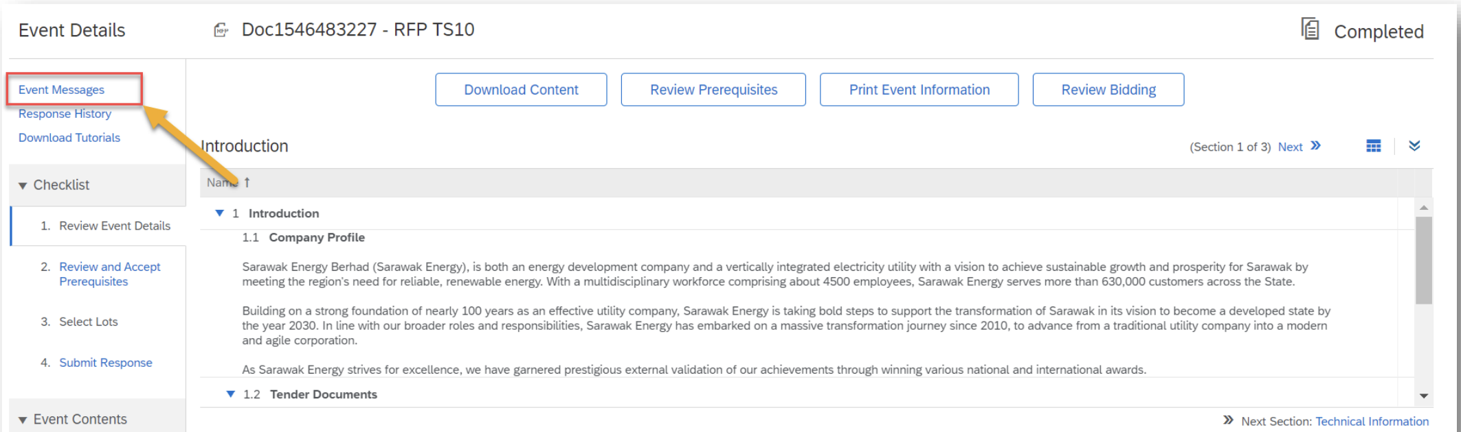 1. Go to the event page and click on "Event Messages" should you have any enquiries to the project team