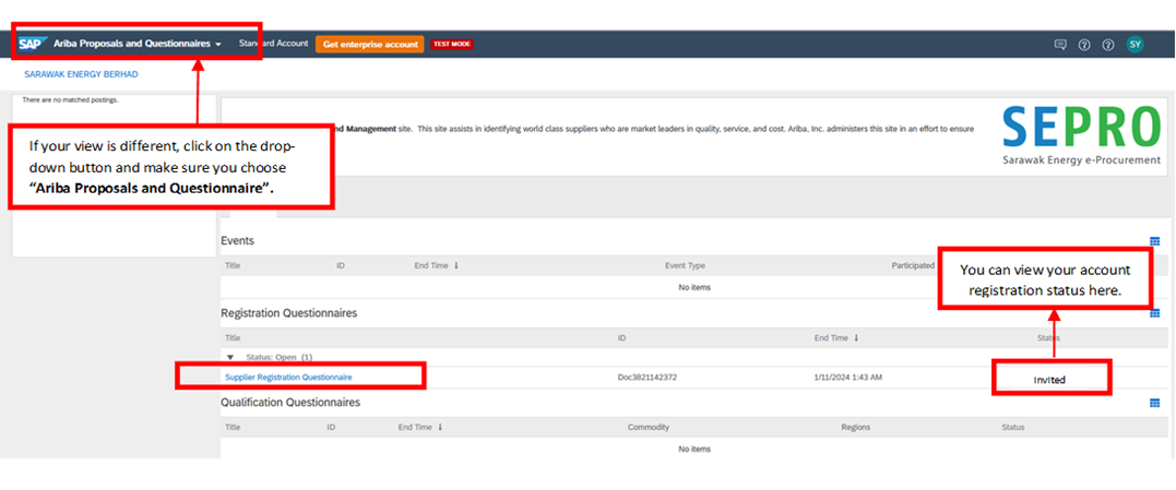 you or you can use SEPRO login site link: sarawakenergy.supplier.ariba.com